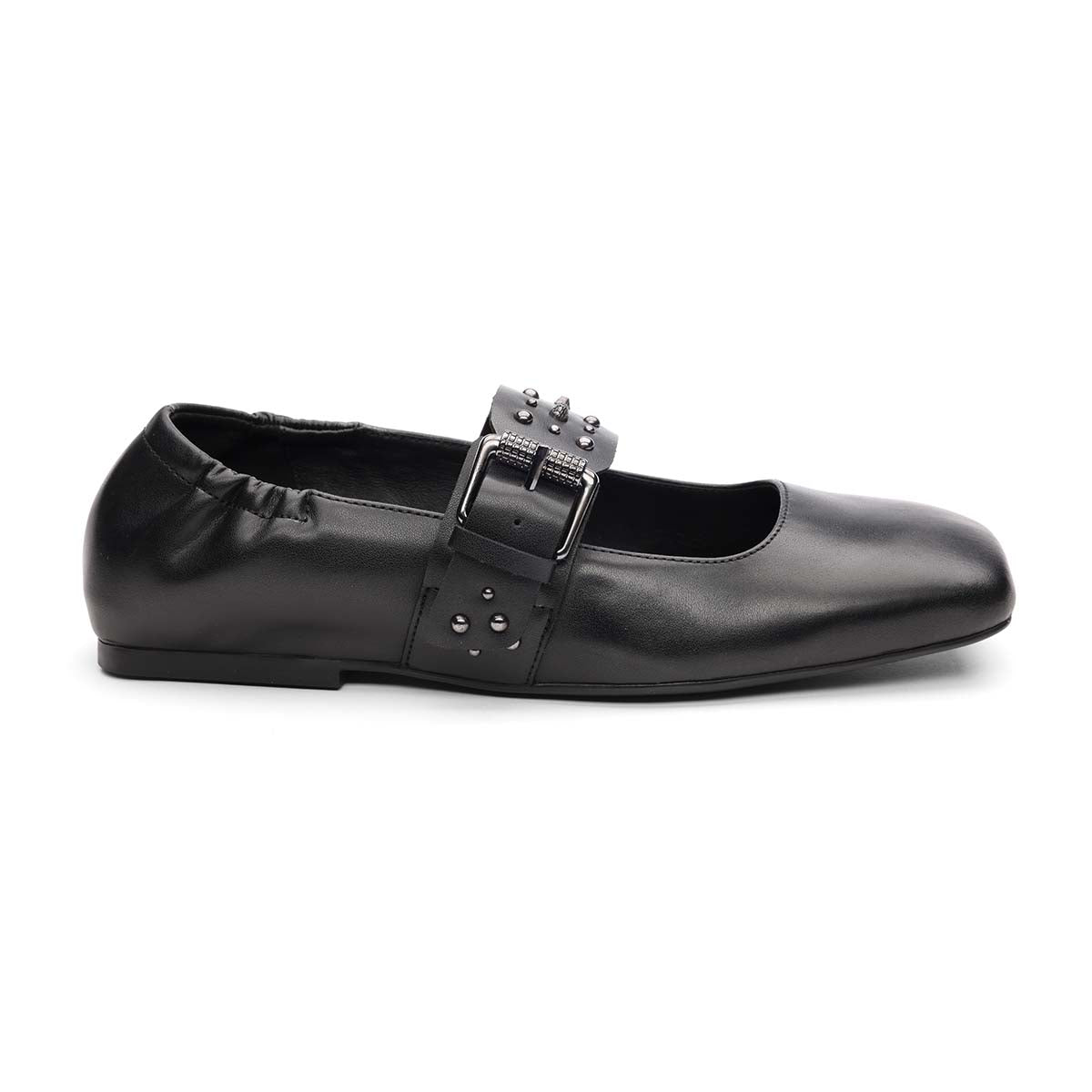 Meet the Beverly Ballet Studded Mary Jane. a stylish twist on the classic ballet flat. Crafted with soft leather and suede. these shoes feature a signature buckle strap and stud detailing. bringing an edge to the traditional Mary Jane design. The squared toe and cushioned interior offer comfort. while the stud accents add a touch of rebellious glamour. Perfect for any occasion. the Beverly Ballet Studded Mary Jane will elevate both casual and formal looks with its chic. edgy charm.
